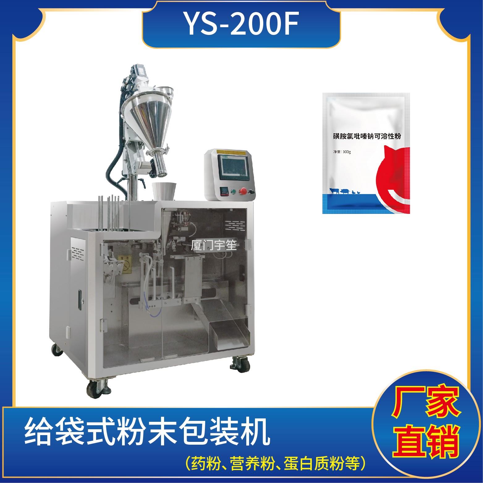 YS-SP200 給袋式粉末包裝機1、適用于食品、醫(yī)藥、化工、化妝品行業(yè)中顆粒、粉劑、液體、醬料等物品的計量包裝,如:調(diào)味粉、蛋白質(zhì)粉、營養(yǎng)粉等。2、調(diào)試方便、占用空間小。包裝流程全自動,無需人工操作??筛鶕?jù)充填物料的性質(zhì)選配不同的下料結(jié)構(gòu)。3、采用觸摸屏操作,PLC控制,封口溫度自動補償,控溫精準(zhǔn),封口美觀大方?!?/p>