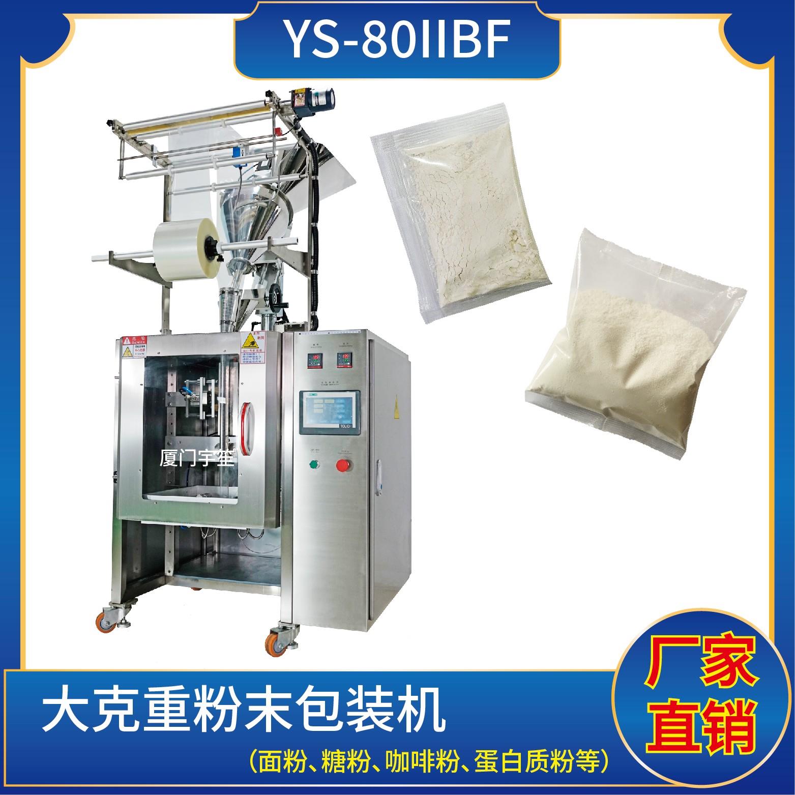 YS- 80IIBF 背封粉末包裝機特 點 1、適用于食品、醫(yī)藥、化工、化妝品行業(yè)中顆粒、粉劑、液體、醬料等物品的計量包裝。2、可自動完成制袋、計量、下料、封合、分切、計數(shù),可根據(jù)客戶要求配置打印批號等功能。3、觸摸屏操作,PLC控制,伺服電機控制袋長,性能穩(wěn)定、調(diào)整方便、檢測準(zhǔn)確。智能式溫控儀,PID調(diào)節(jié),保證將溫度的…