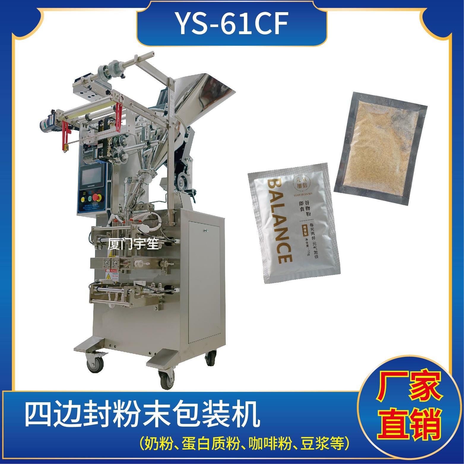 YS-65CF 四邊封粉末包裝機特 點 1、適用于食品、醫(yī)藥、化工、化妝品行業(yè)中粉劑物品的計量包裝。2、可自動完成制袋、計量、下料、封合、分切、計數(shù)、且可根據(jù)客戶要求配置打印批號等功能。3、觸摸屏操作,PLC 控制,驅(qū)動步進電機控制袋長,性能穩(wěn)定、調(diào)整方便、檢測準(zhǔn)確。智能式溫控儀,PID調(diào)節(jié),保證將溫度的誤差范圍控制…